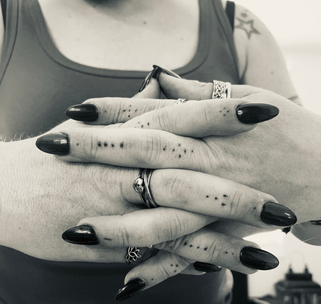 In the spring of 2023 I determined that, perhaps inadvisably but totally on brand, I should take up stick and poke tattoos. Stick and poke tattoos are not done with a tattoo machine but instead with the needle held in the hand and the ink manually applied spot by spot one drop at a time.